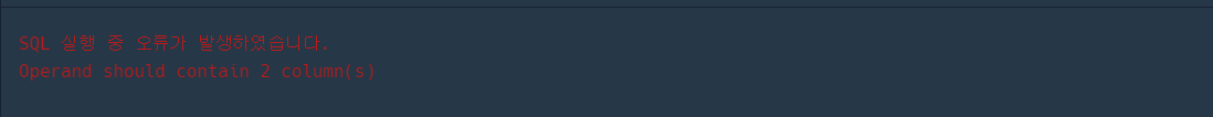 왼쪽은 2개의 컬럼이지만 오른쪽의 서브쿼리의 결과가 1개이기 때문에 발생했다.