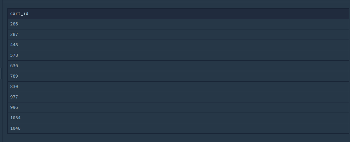 전체 데이터에서 cart_id 가 2개 이상일때를 찾아주는 값이 나온 것 같다